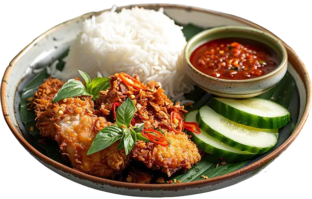 Ayam Geprek Mas Eko dikenal dengan sambal ulek dadakan yang fresh dan penuh aroma. Tiap porsi ayam goreng krispi langsung ditumbuk dengan sambal sesuai level pedas pilihan, dari “santai” sampai “bakar otak”. Pilihan sambalnya beragam: sambal merah, ijo, bawang, hingga terasi — semuanya disajikan segar dan bikin nagih. Ayamnya pun selalu konsisten: garing di luar, juicy di dalam, dan bumbunya meresap sempurna.